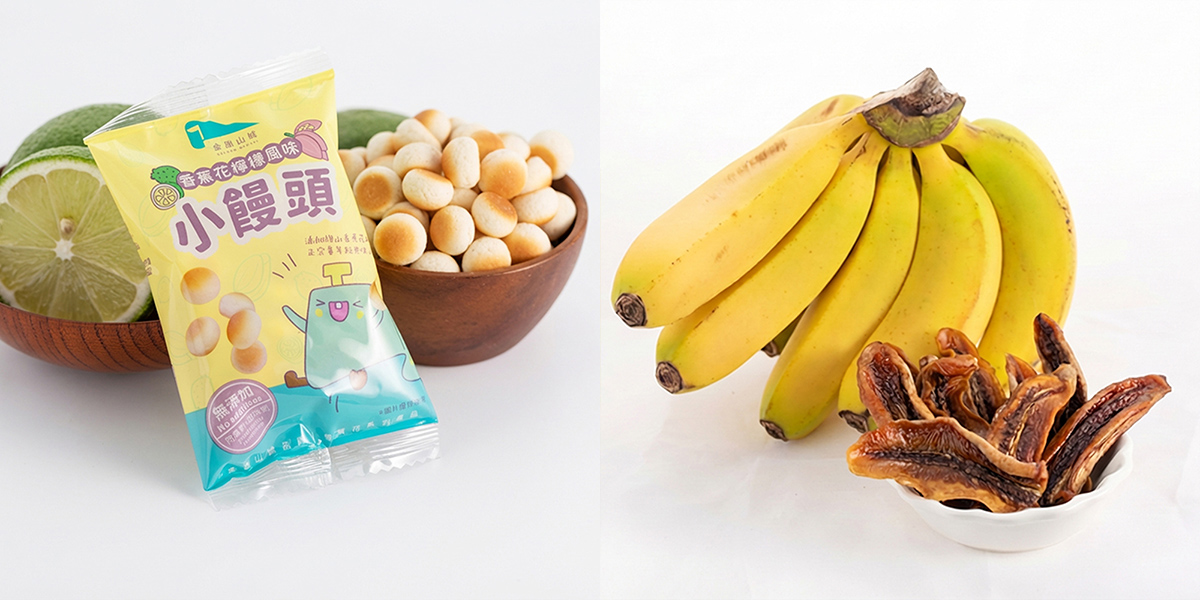 ■招牌香蕉花檸檬風味小饅頭:旗山糖廠社區將農村副產物香蕉花轉化創新烘焙,提升農產附加價值。小饅頭風味以檸檬清香為主調(無香蕉味),加入富含花青素等營養成分的香蕉花,酸甜平衡不膩口。外層酥脆、內部鬆化細緻,入口不黏牙,兼具童趣與精緻口感。檸檬清香尾韻,形成酥、鬆、香三段層次,兼具童年經典小饅頭的熟悉感與旗山創新檸檬香驚喜。風味鮮明易辨識,適合孩童也符合成人對低負擔餅乾的期待,適合學童點心、辦公零食或旅遊伴手禮,吸引親子家庭。
