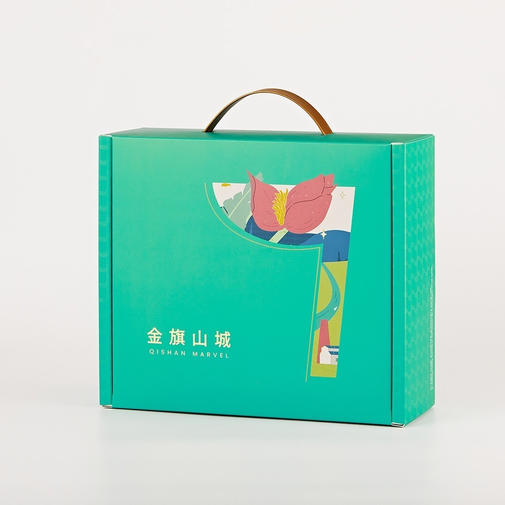 3.禮盒內外設計為旗山香蕉花和旗山糖廠、旗山溪等地景手繪圖